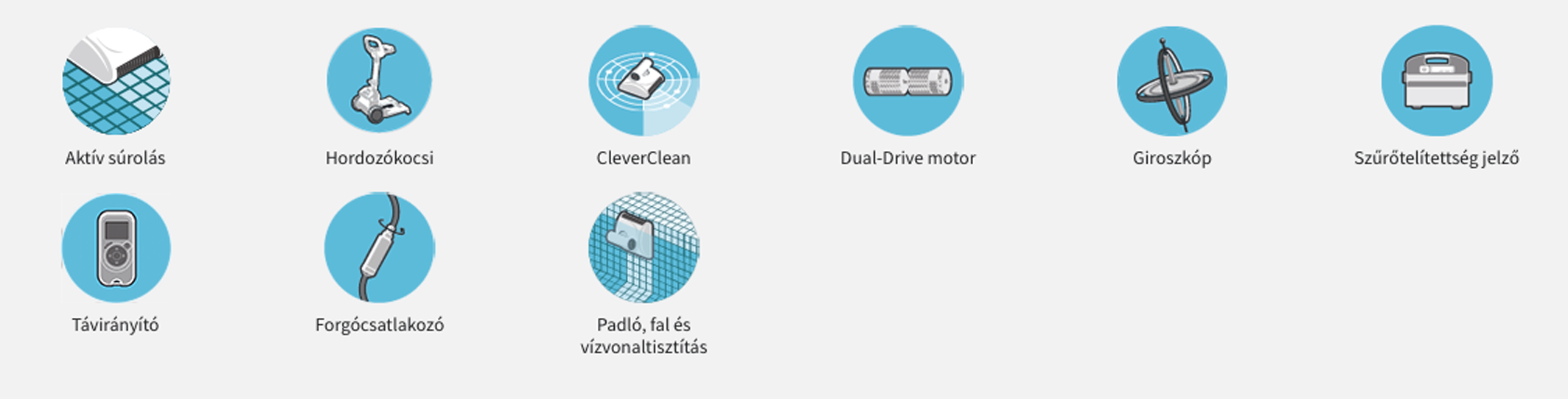 A robot két erőteljes hajtómotorral és aktív kefékkel rendelkezik, amelyek képesek eltávolítani a legmakacsabb szennyeződéseket is, a nagy kapacitású szűrőkosár pedig kiváló vízminőséget biztosít. A gép időzített ciklusokban működik, és alacsony karbantartási igénye révén különösen ideális mindennapi használatra.