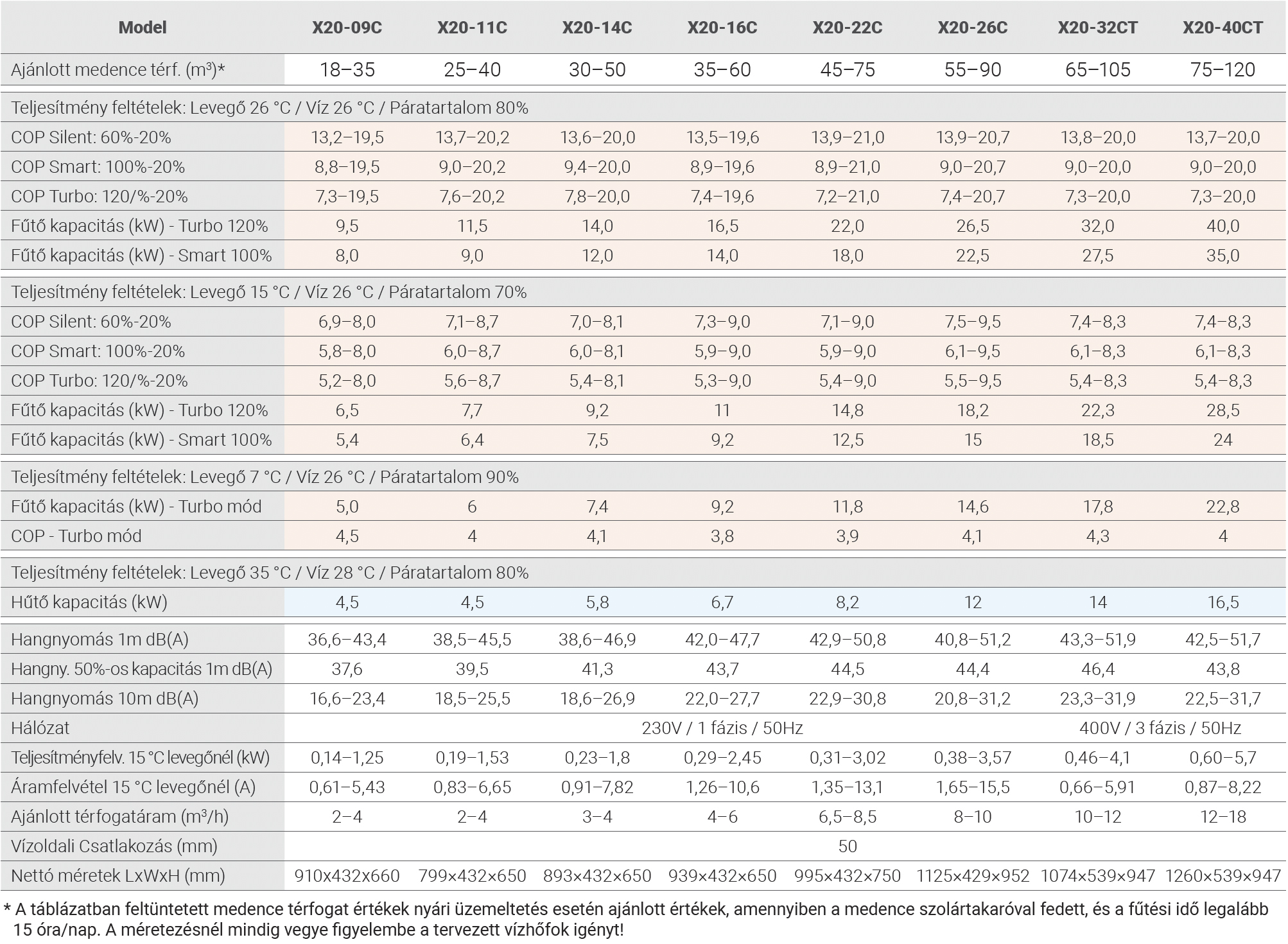AJÁNLOTT MEDENCETÉRFOGAT: 45-60 m3