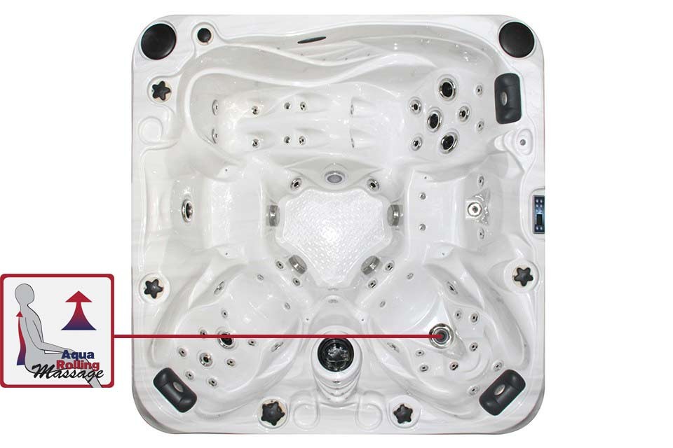SPA Solace mérete: 230x230x91cm 4 ülőhely, 1 fekvőhely, 3db ergonómikus fejtámla, 50 db masszázsfúvóka, 8 db légmasszázsfúvóka, Aquarolling masszázs LED világítás, masszázsszivattyú teljesítménye 2x 5LE, ózonos fertőtlenítés, hibrid fűtés rendszer, beépített audió rendszer iPod, telefon dokkolóval, űrtartalom 1570l, száraz tömeg: 380kg.